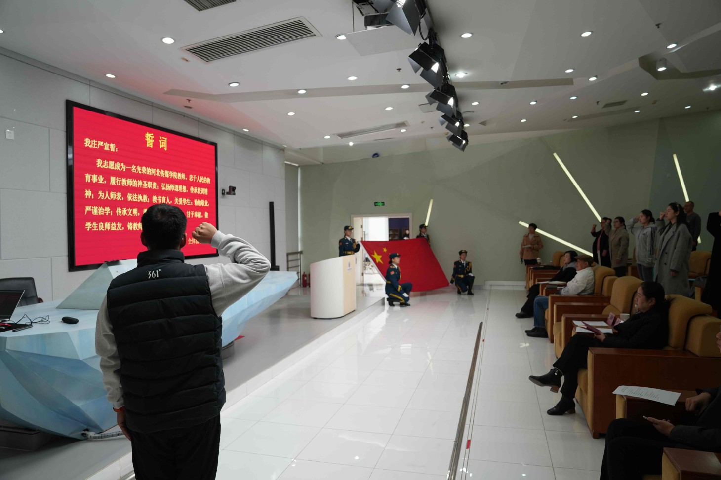 为让新教职工尽快完成角色转换,更好地履行岗位职责,教师展中心于10月24日在兴安校区举办2025-2026学年新进教职工研习营入职培训开班仪式,常务副校长王锡朝和相关处室领导出席开班仪式。会上,科研处处长董孟怀为2024年考核优秀教职工颁发证书,优秀教师代表、国际传播学院教师何芳和新进教职工代表、马克思主义学院杨利敏分别发言,随后,全体新教职工签订师德师风承诺书。