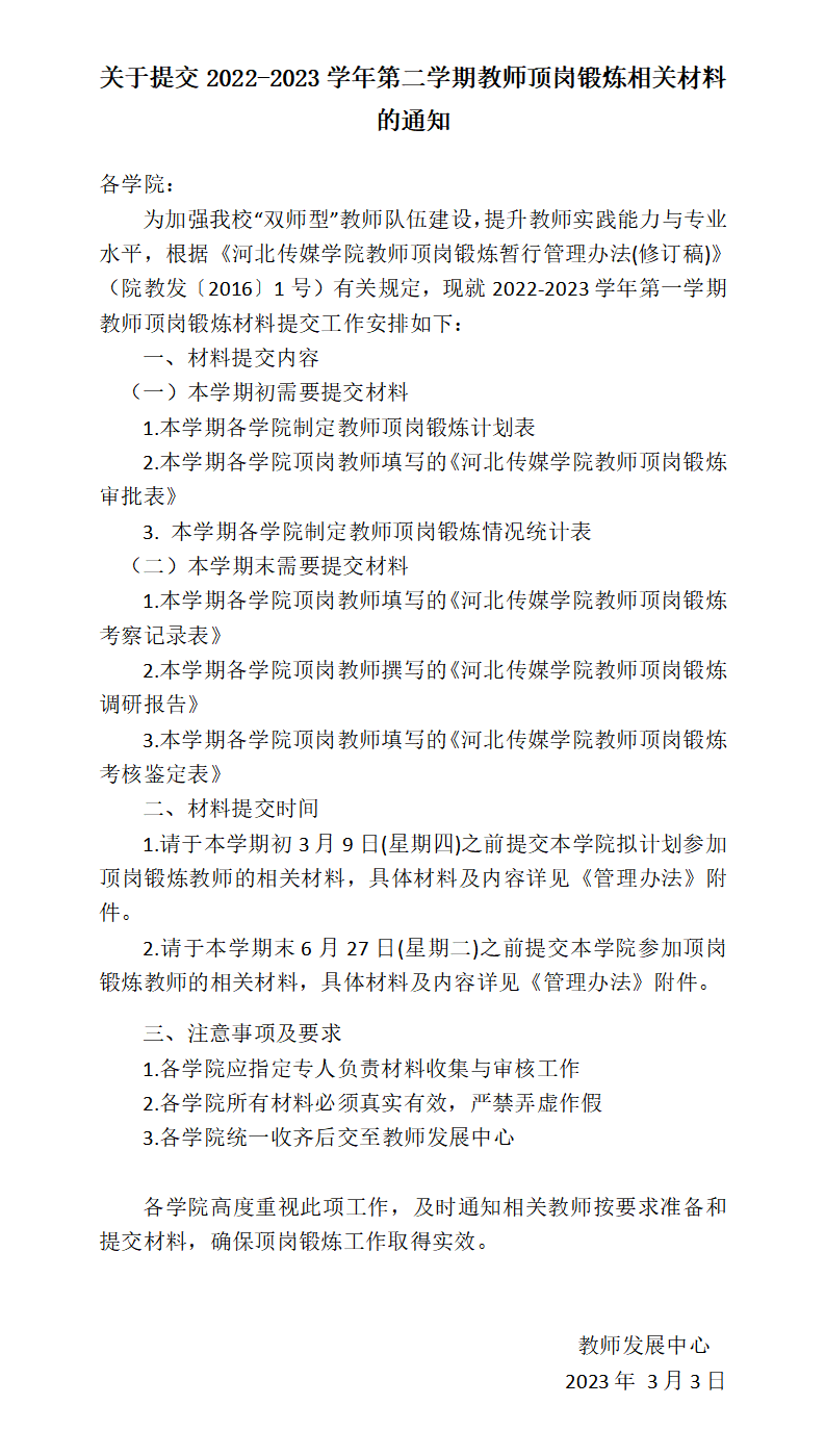 2022-2023学年第二学期提交顶岗锻炼材料通知