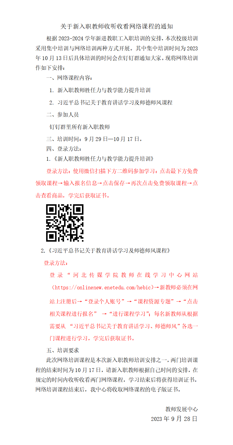 2023-2024学年新进教职工入职培训的通知