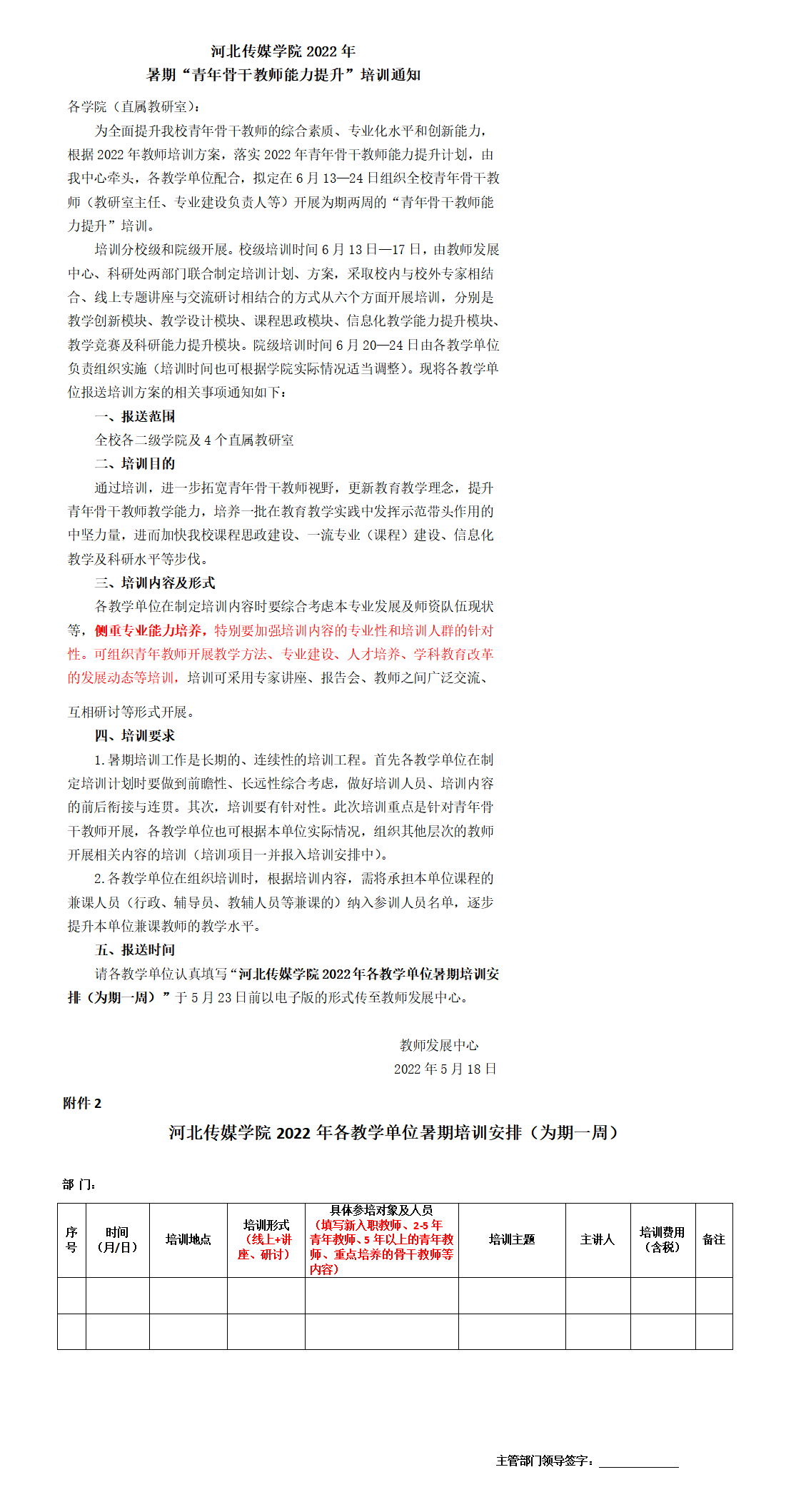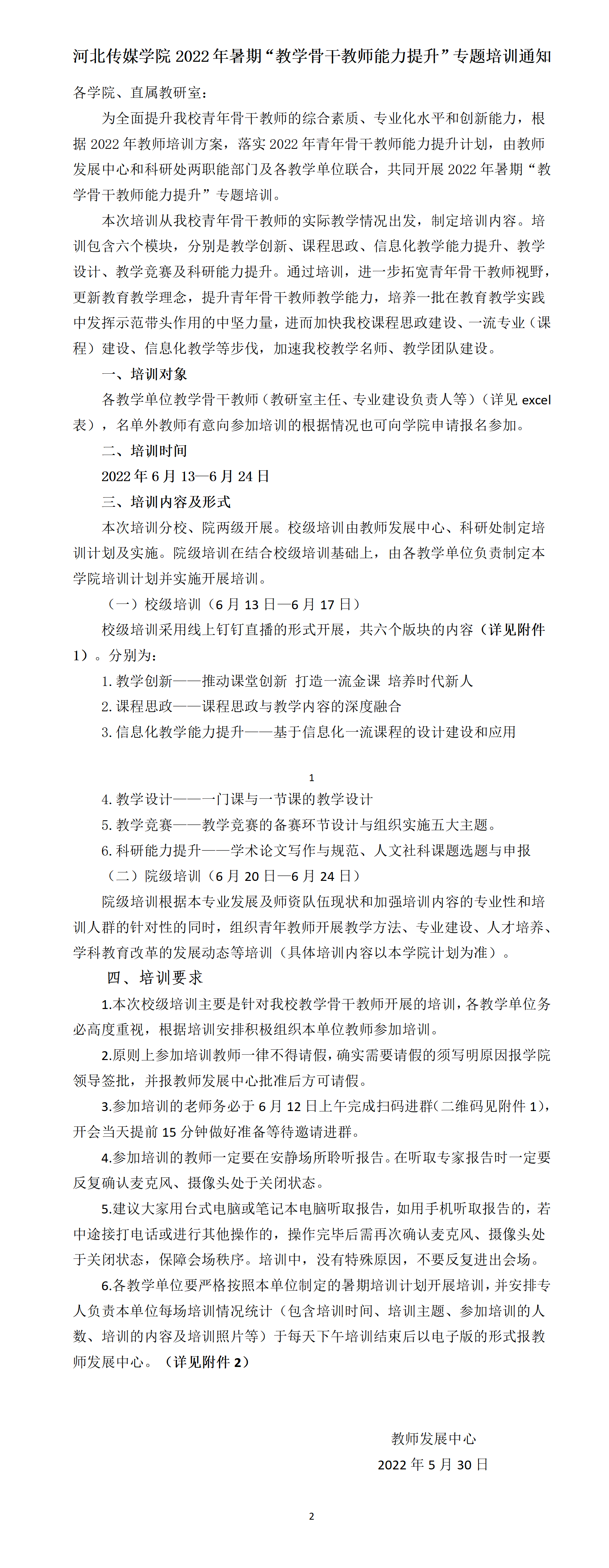 河北传媒学院2022年暑期“教学骨干教师能力提升”专题培训通知