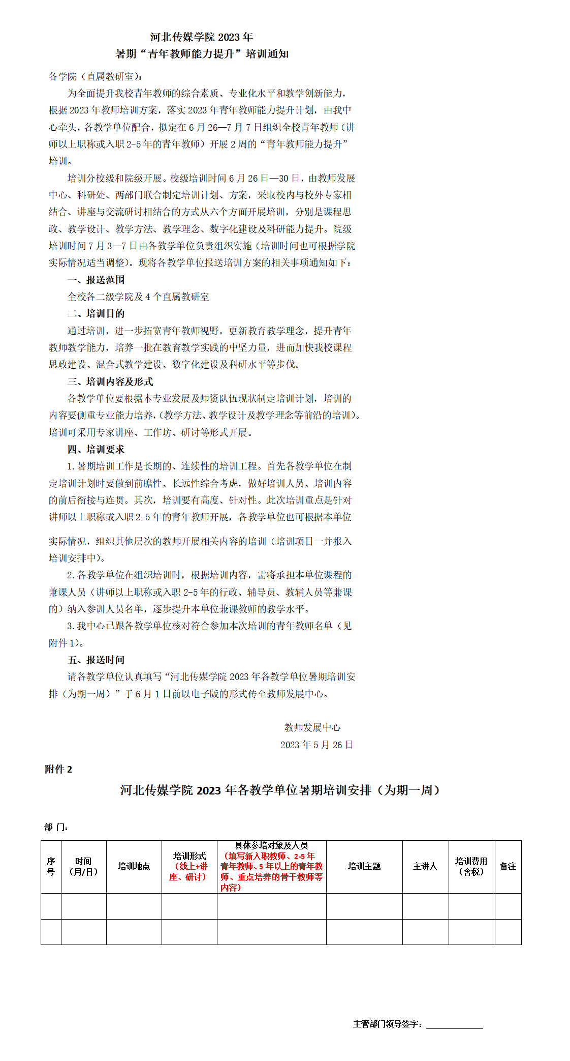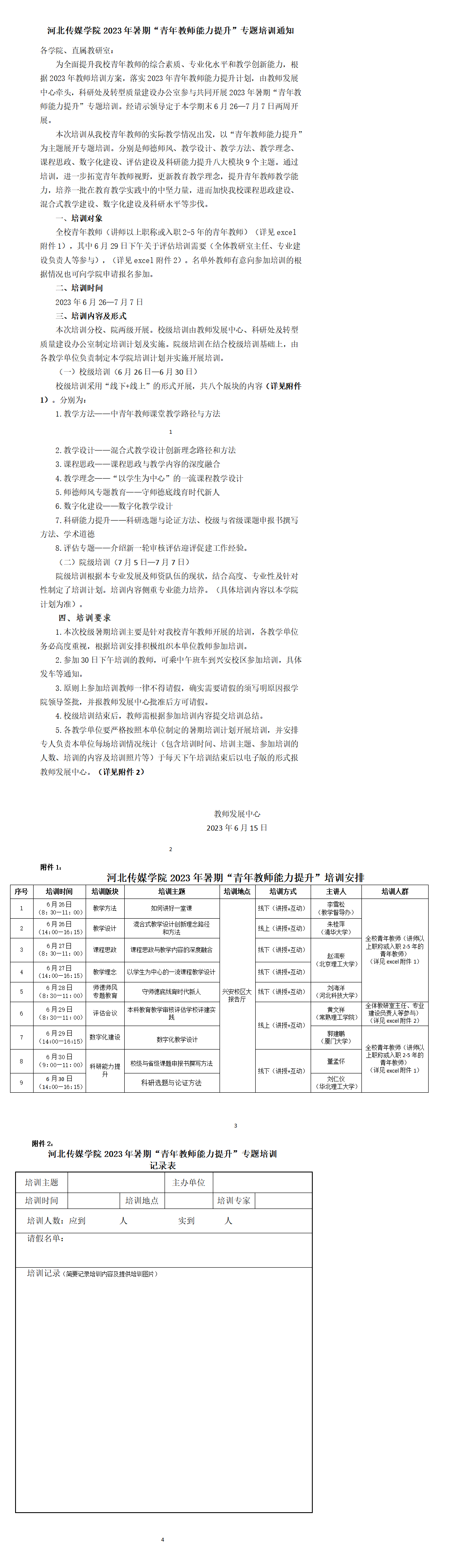 河北传媒学院2023年暑期“青年教师能力提升”专题培训通知