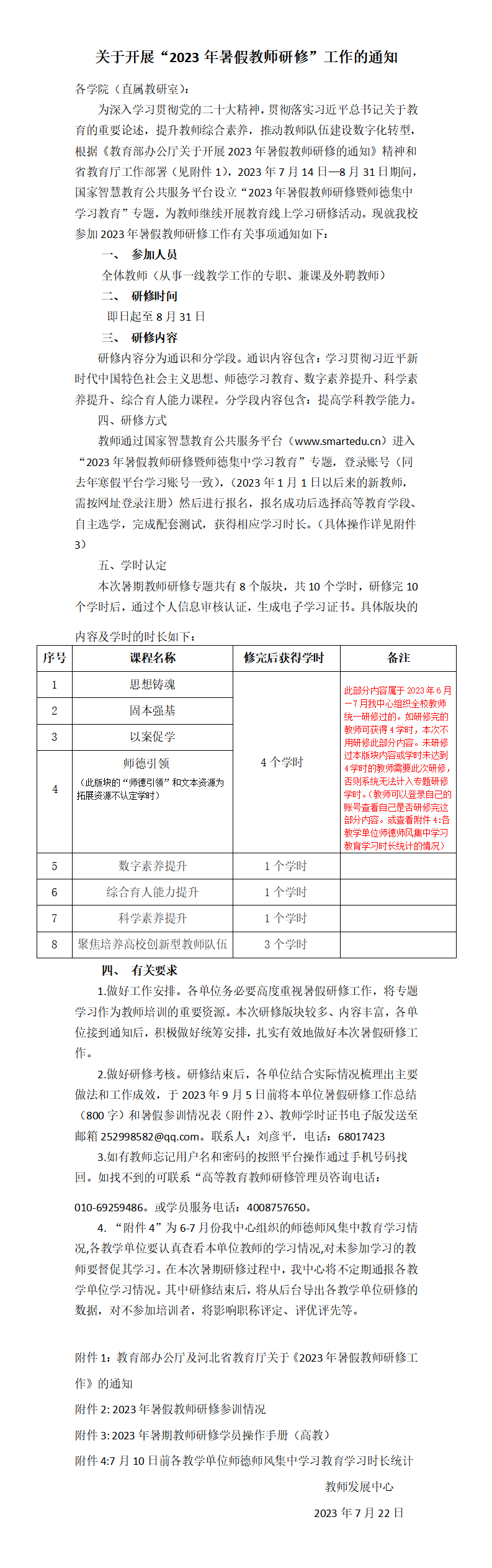 2020年河北传媒学院暑期教师培训通知 各学院、直属教研室: 为进一步推进学校内涵建设、深化课程改革、加强师资队伍建设为宗旨,促进教师可持续发展。我中心结合学校教师实际情况,开展2020...