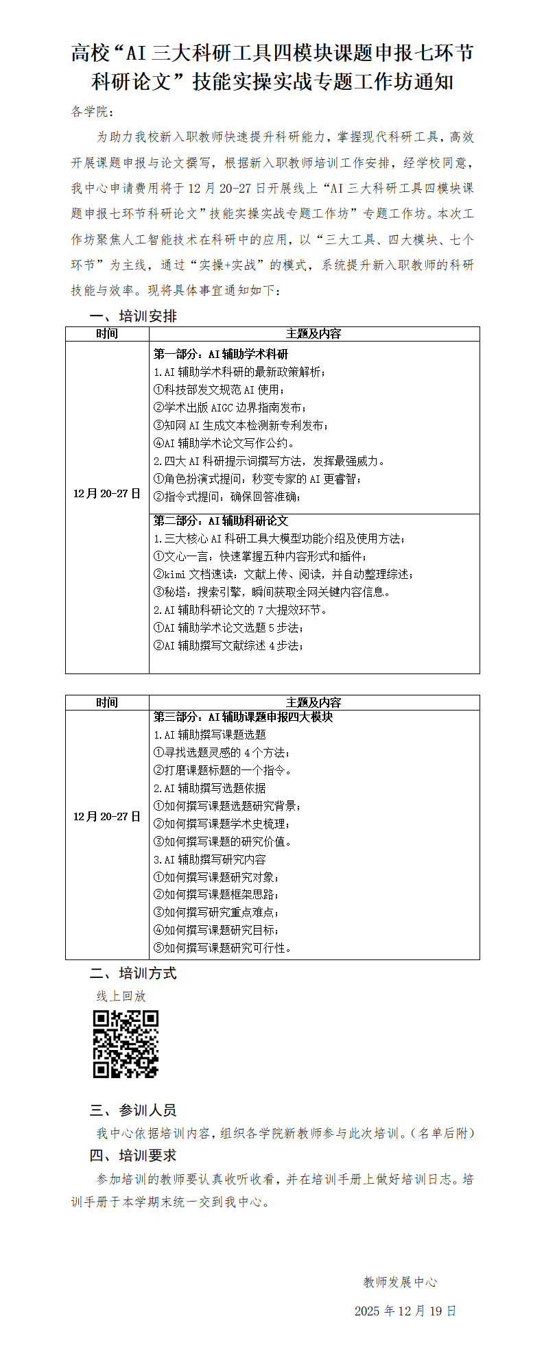 高校“AI三大科研工具四模块课题申报七环节科研论文”技能实操实战专题工作坊通知